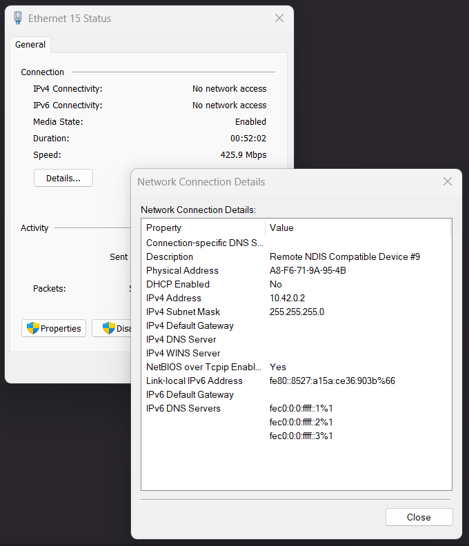 If you are using USB version of Olive Components, please make sure the usb_protocol from manager is set to RNDIS. If you are using Linux or MacOS change this back to ECM.