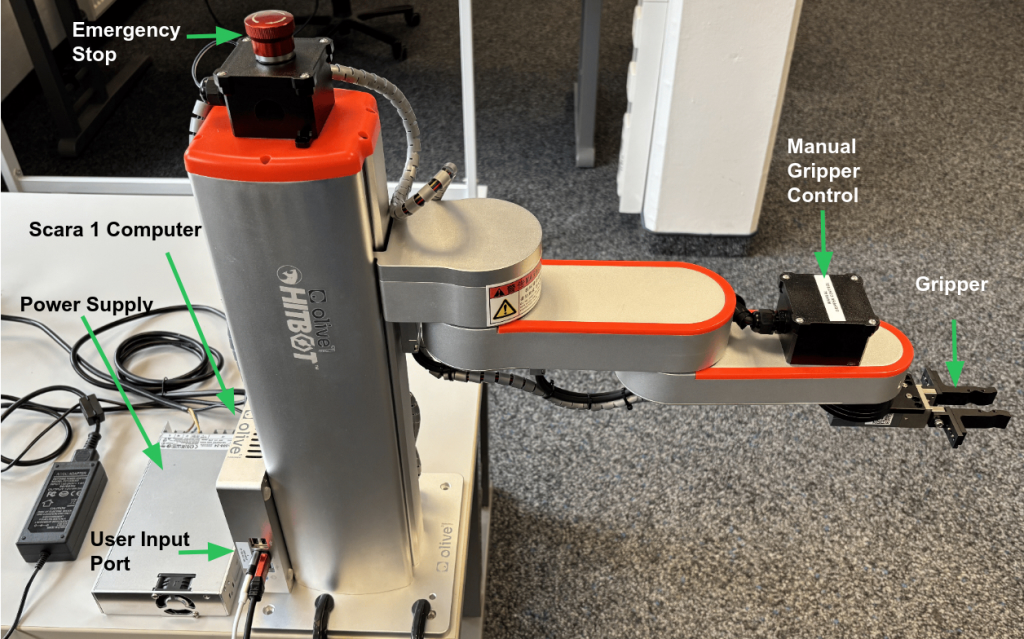 At the end of the arm, a gripper end-effector is installed for grasping and handling objects. This configuration enables simple pick-and-place operations and provides a compact platform for robotics experimentation, education, and automation applications.