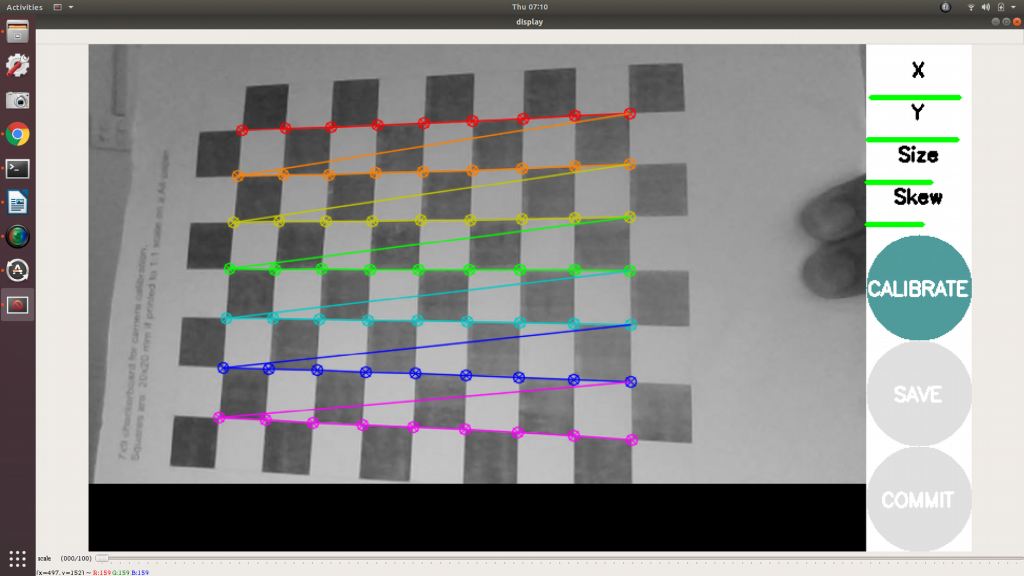 Press the save button to see the result. Data is saved to “/tmp/calibrationdata.tar.gz”
