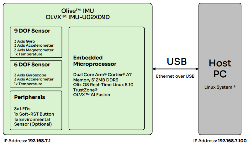 The OlixSense™ is a IMU sensor designed for use in robotics and other applications that require precise attitude and heading information. It uses a redundant 9 degree-of-freedom (DOF) sensor array, which provides accurate and stable measurements of orientation and angular velocity with a 3-axis gyroscope, 3-axis accelerometer, and 3-axis magnetometer. Each of those provides a precise measurements along the x, y, and z axes. Together, they enable accurate tracking of orientation, linear acceleration, and magnetic field changesover time relative to a fixed reference frame.